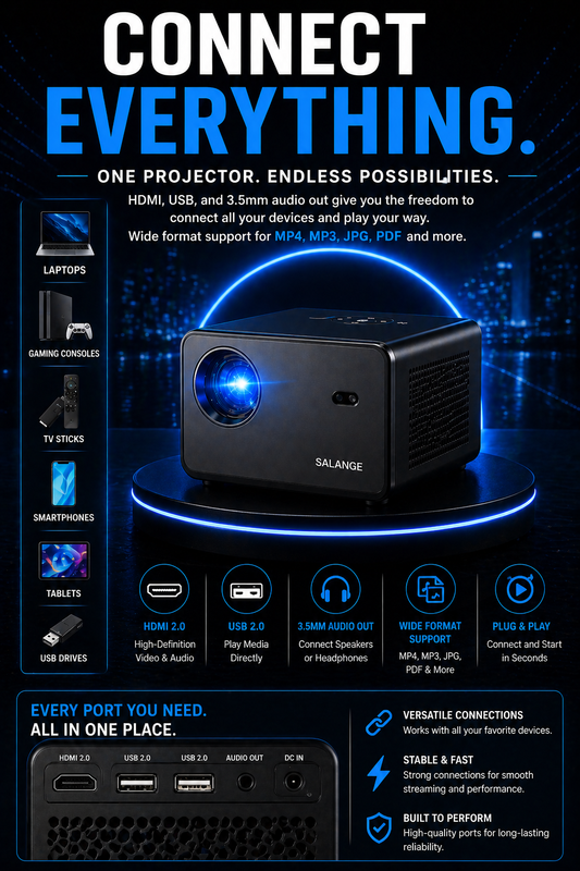 Salange P300 Mini Portable Projector - 4K 8K Video Decoding, 720P HD, Android 11, Wi-Fi, BT 5.1